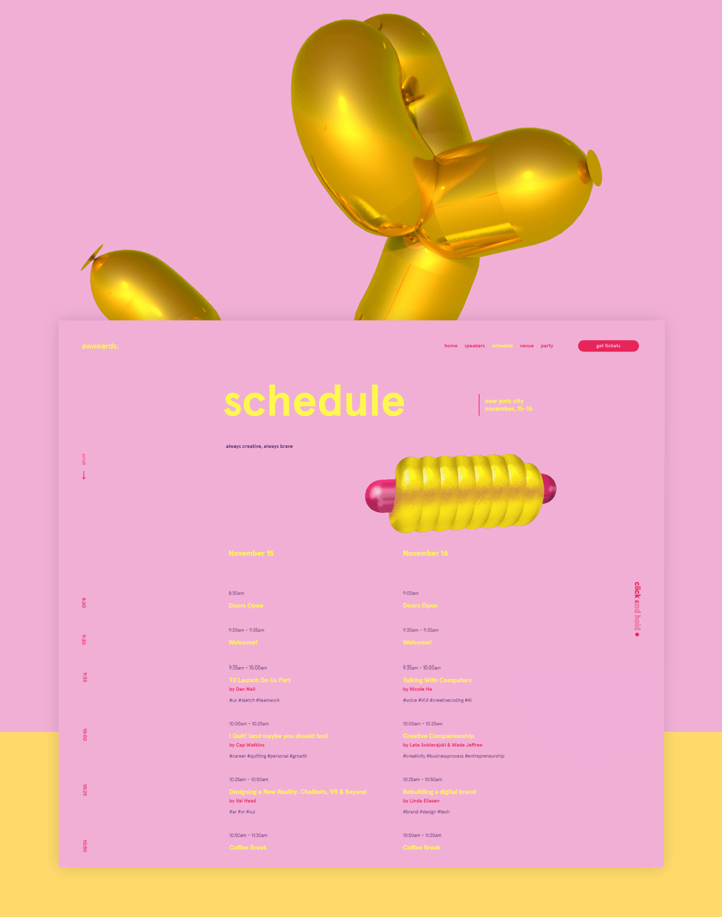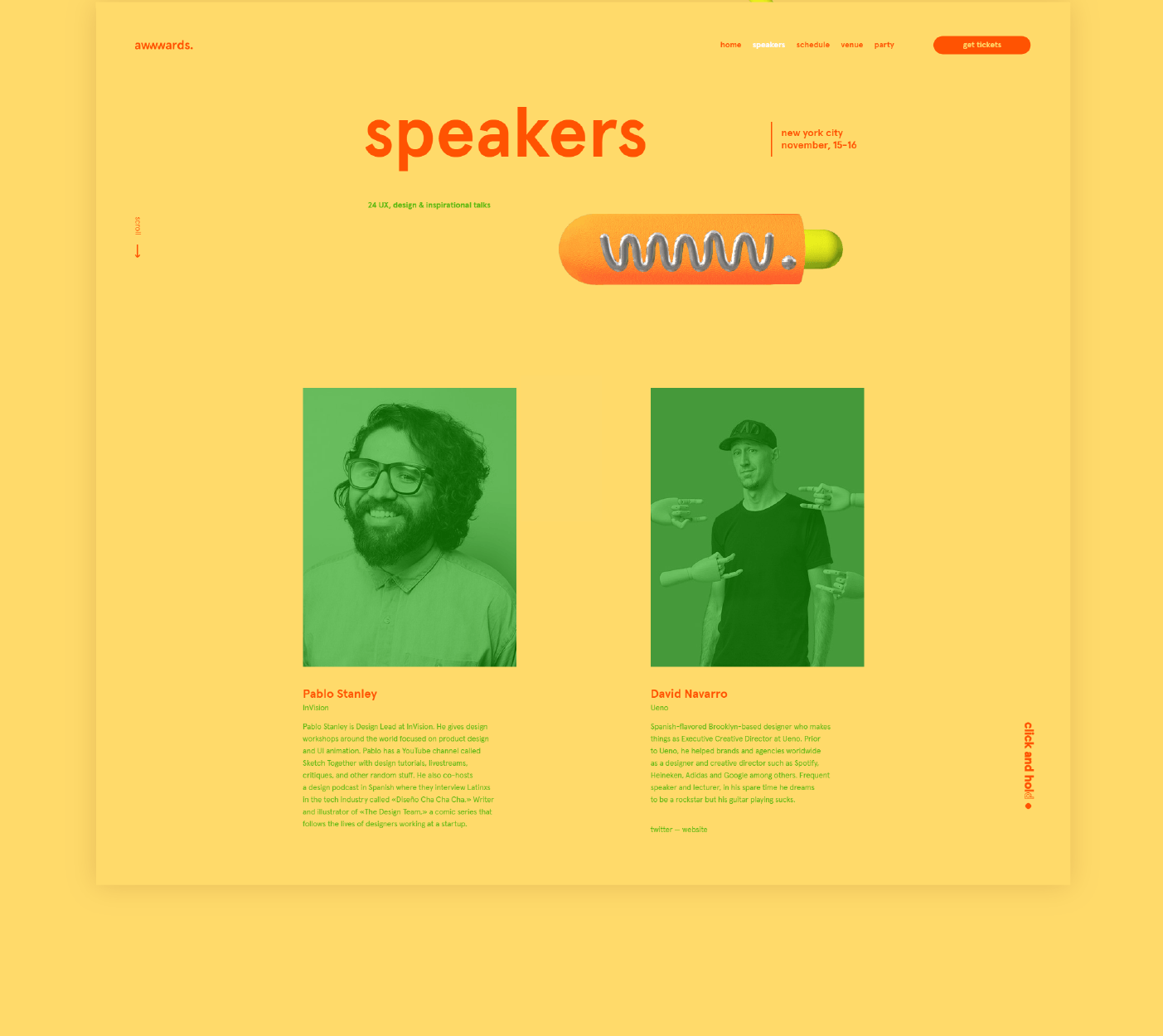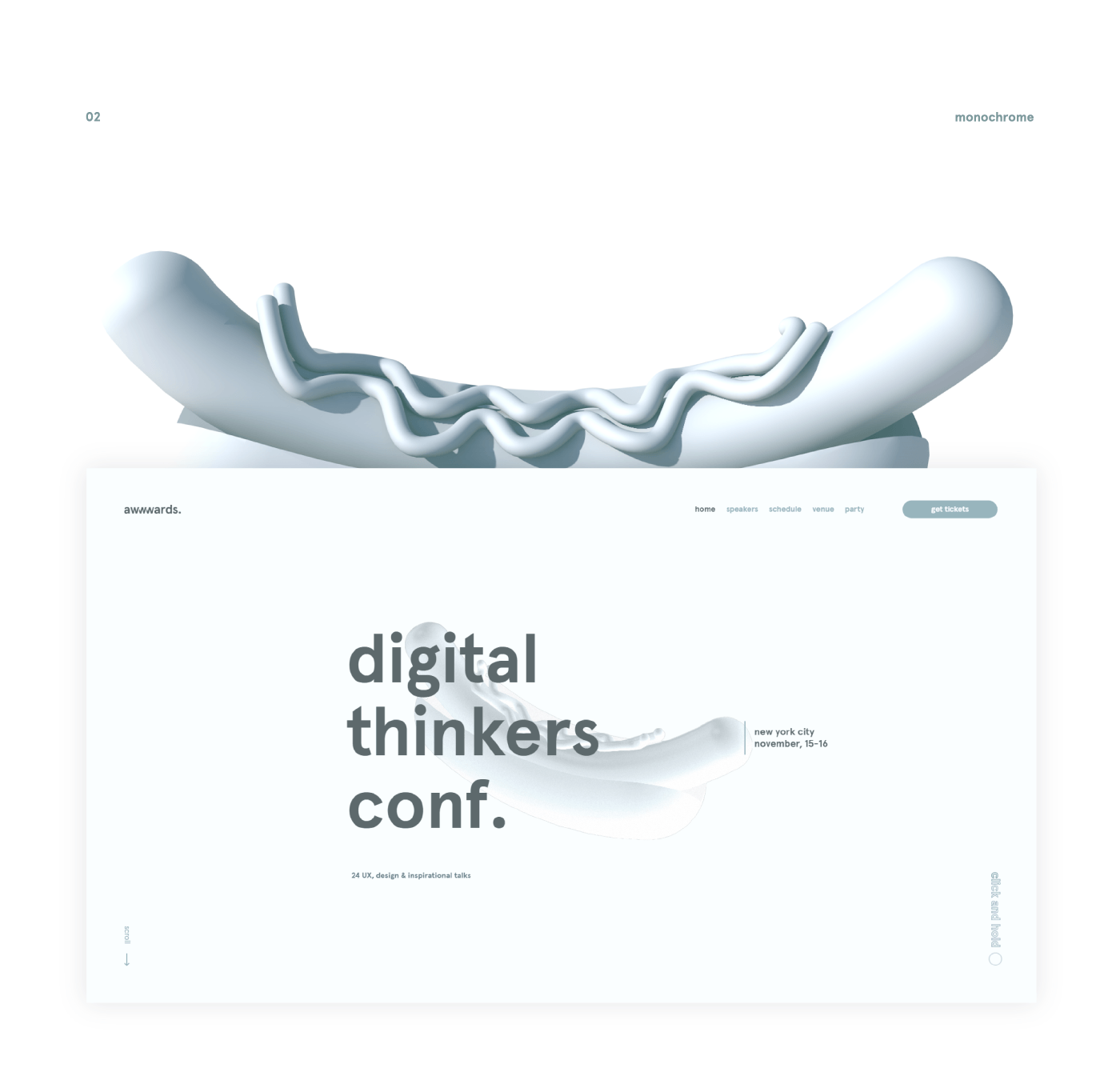 To make a site that wouldn’t just talk about the conference, but would impress the design community, as the users are the leaders of the digital crowd. The conference is to take place in New York, and the main condition was to create a direct association with the city.