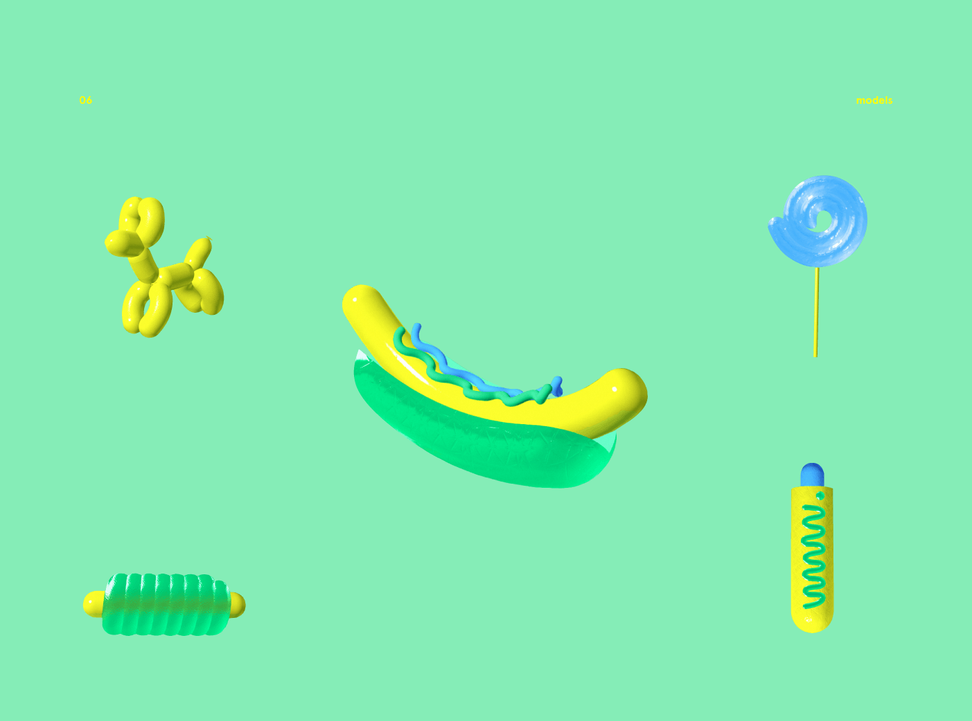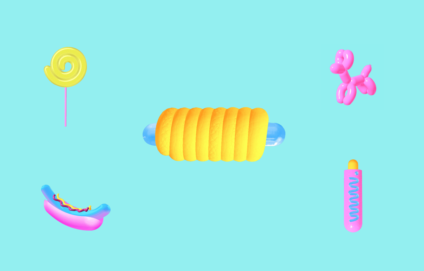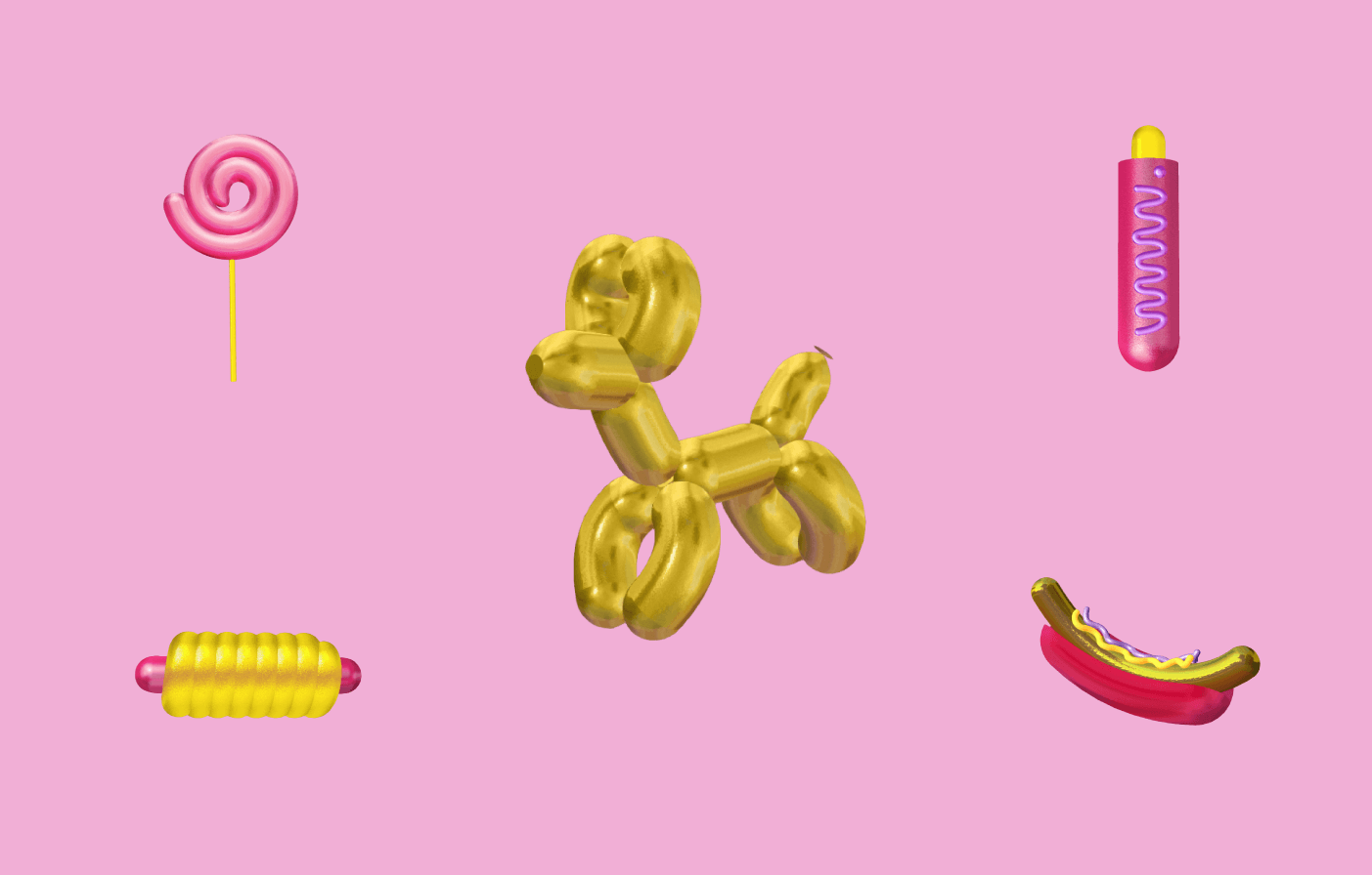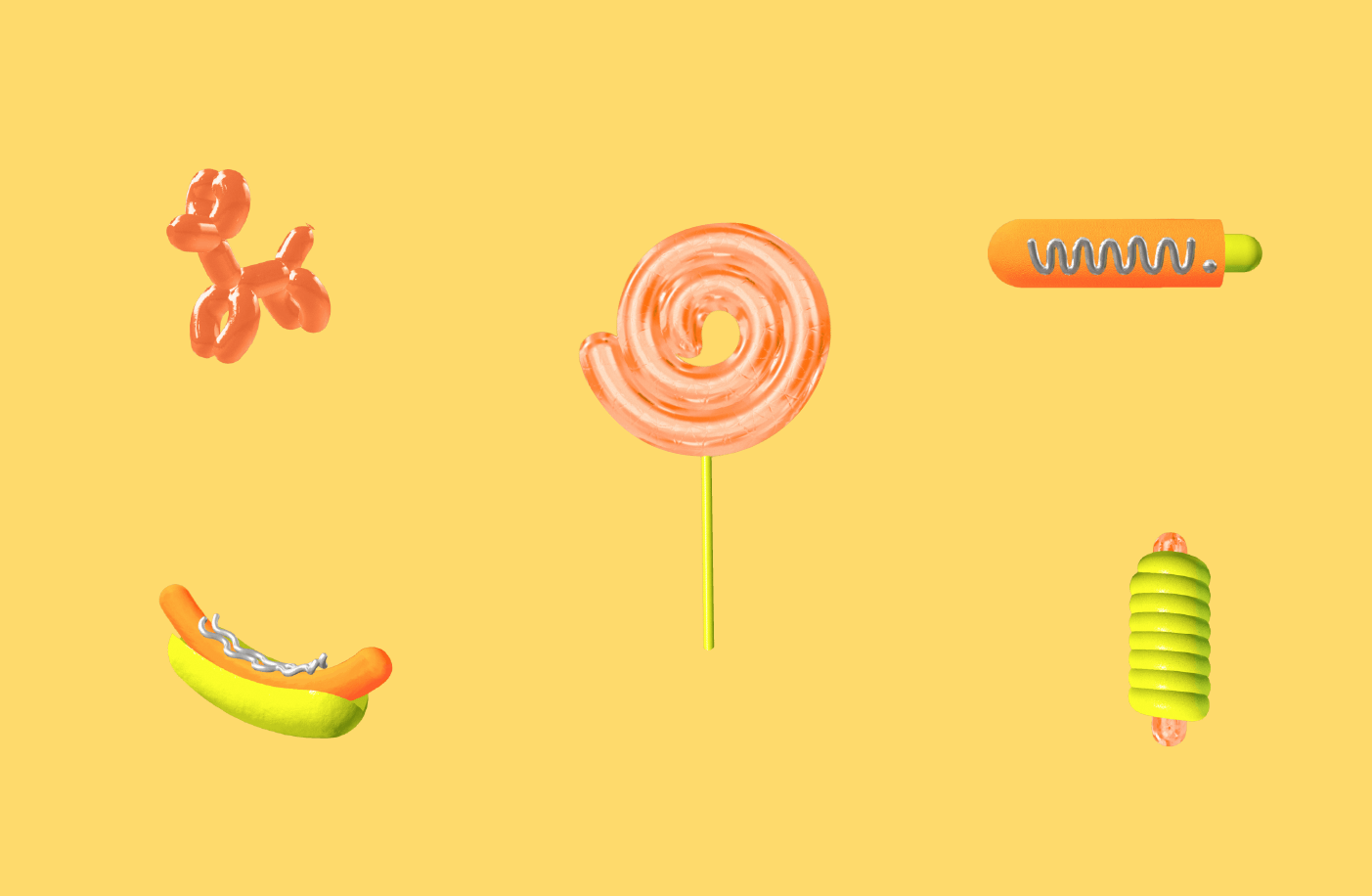 To recapture the atmosphere of New York through 3D models of american fast food: hot dogs and pigs in the blanket.